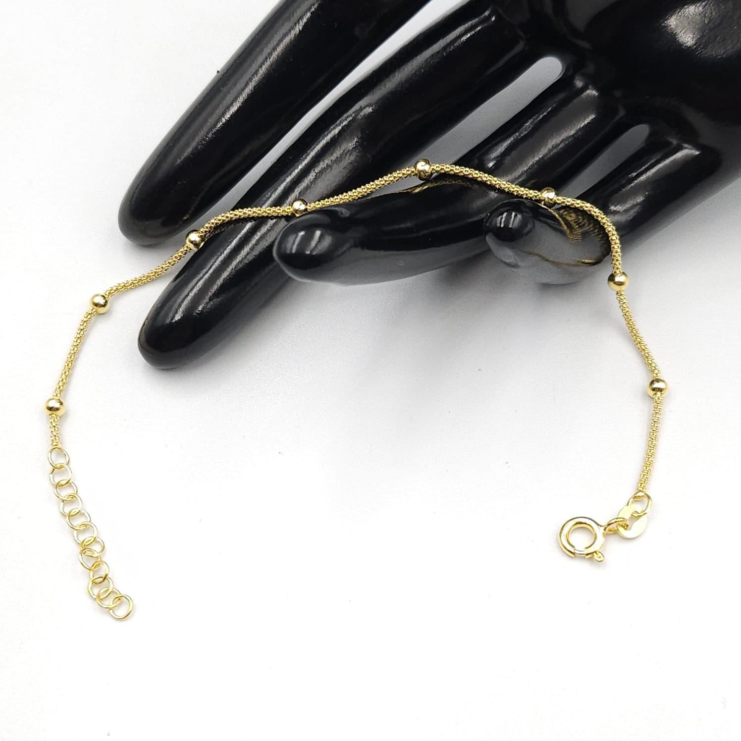 Braccialetto in argento marchiato 925 e placcato oro, allacciabile fino a 19,5 cm.